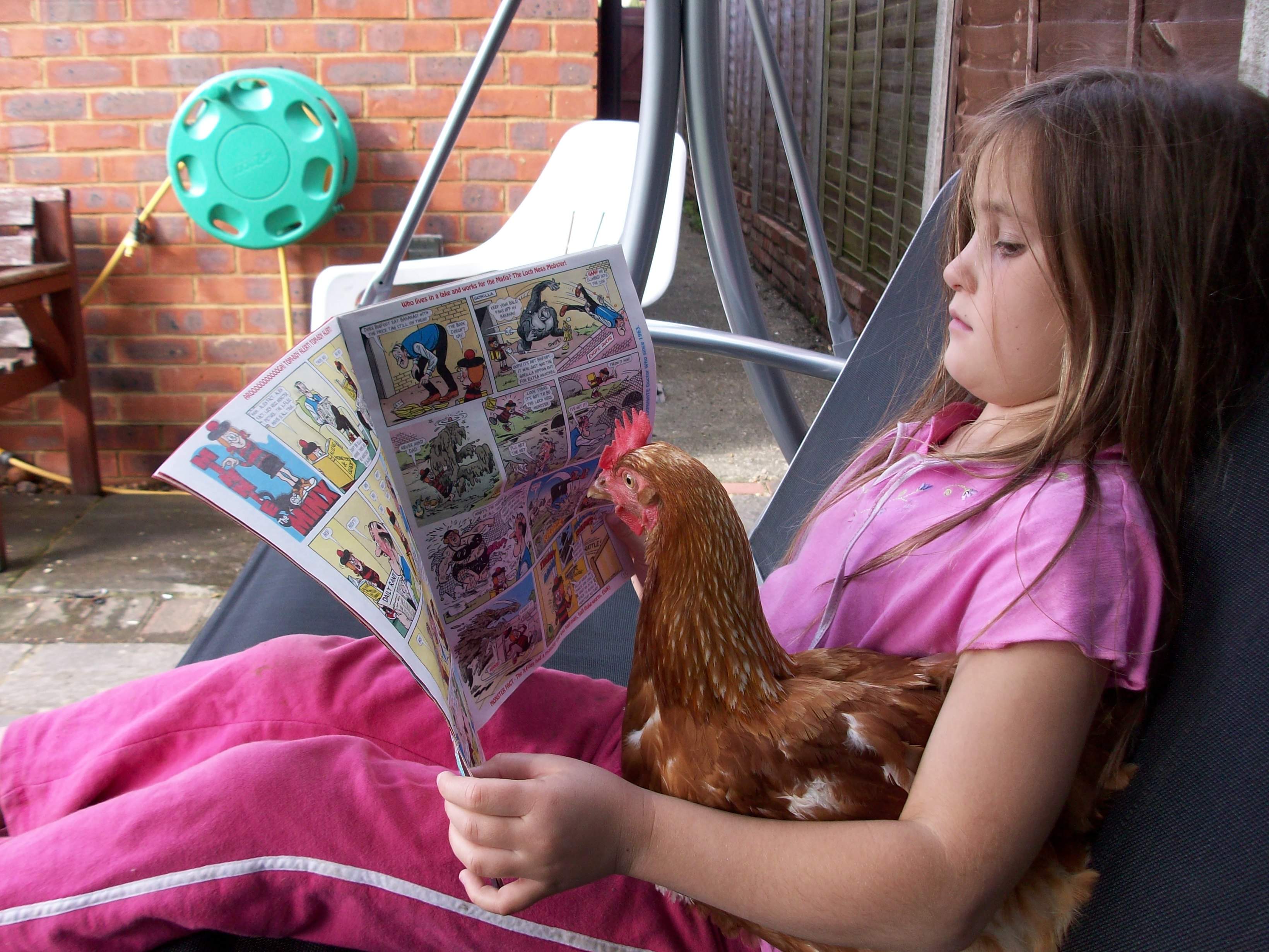 Yes. That is a picture of me at 9 years of age reading the Beano on a swingseat with a chicken on my lap.